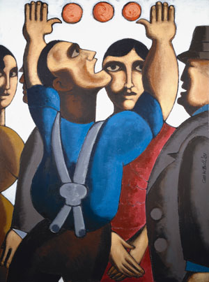 However, the source of the paintings is usually an anecdote, or remnant of anecdote.  It may be someone he knew or a scene from childhood. A memory may be stirred by a news photo.