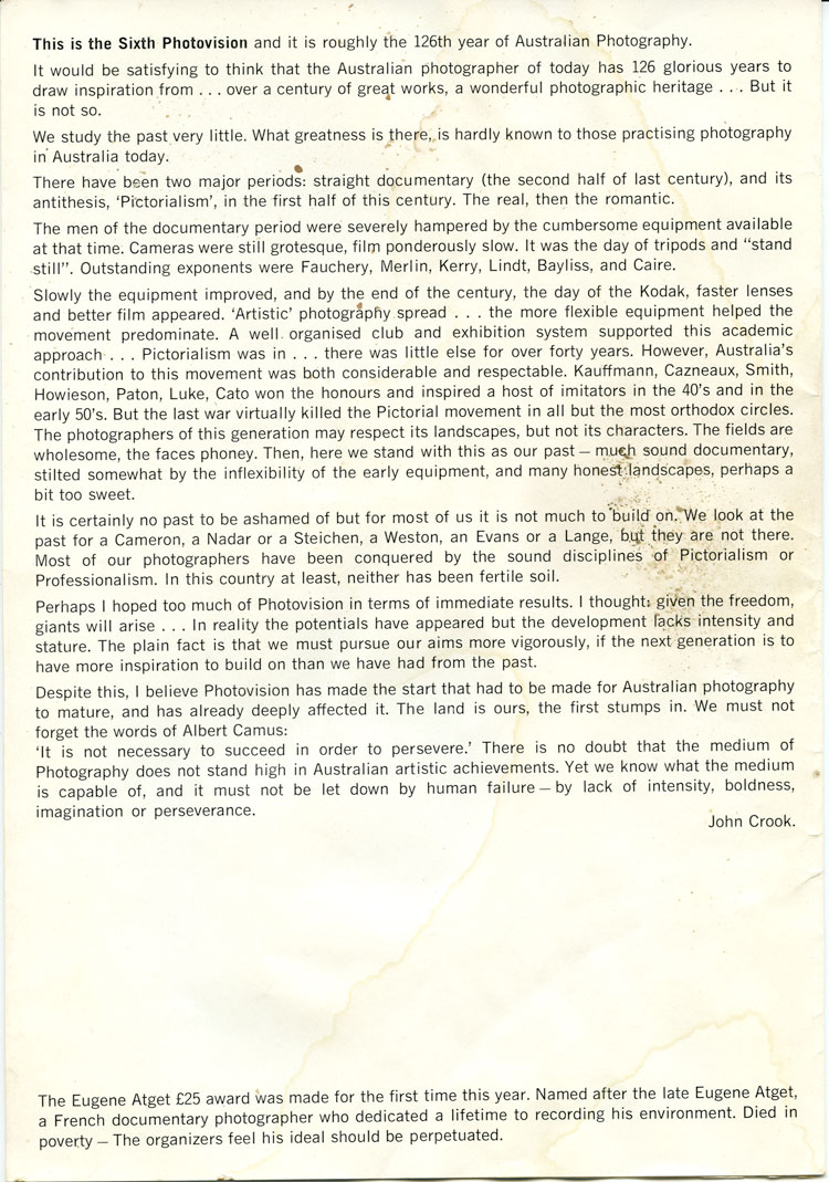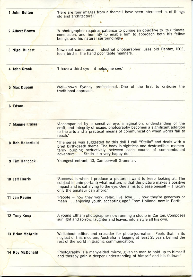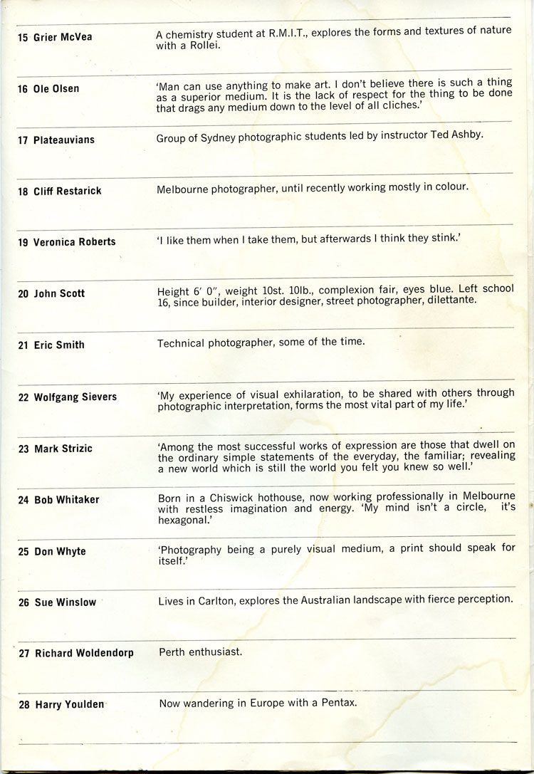 Australian photographers based in Melbourne 1959 – late 1960s