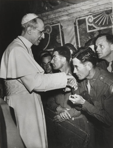 One of the most personal and poignant images is of Pope Pius XII greeting soldiers in Rome in 1944 (plate 4). Le Guay recalls, "When the Allies entered Rome during World War II, Pope Pius granted an audience to some of the victorious troops.