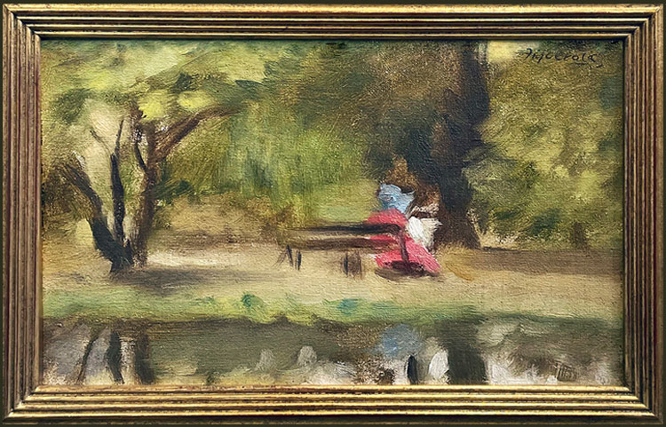 Alma Figuerola, Woman Reading on Bench, sold at Gibson's Auction in October 2024 |