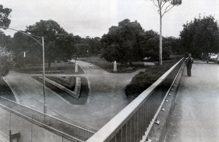 Also, the work Lynn Silverman has done in Australia has been very interesting and Australian. There was her early work on the western suburbs of Sydney in which she took 13 equidistant viewpoints in a street and photographed looking into each side of the road from each viewpoint. One side was the railway line going off to Melbourne through paddocks, a loose kind of agglomeration of semi-industrial buildings, straggly trees, and on the other side a row of typical Sydney western suburbs blocks of flats. That is a fascinating work, a very linear, precise kind of work. The quality of the prints is such that they require close attention.
