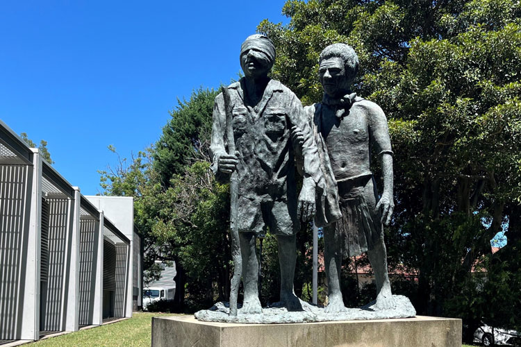 The most elaborate memorial featuring the 1942 Buna photograph is The Kokoda Track Memorial Walkway community project opened in 1996. The Track covers more than 800 metres from Rhodes railway station to Concord Repatriation General Hospital in Sydney’s inner-west, and runs along the mangrove-studded shores of Brays Bay on the Parramatta River.