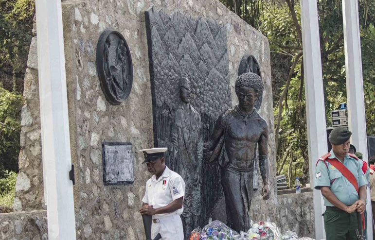 The plaque records that : In June 2008, Australian senator Guy Barnett called for his country's Parliament to give official recognition to Papua New Guineans' courage and contributions to the war effort. In 2009, the Australian government began awarding the 'Fuzzy Wuzzy Commemorative Medallion' to living Papua New Guineans who assisted the Australian war effort, usually bringing survivors and their families to Port Moresby for ceremonial presentations. Australian veterans generally complained that the recognition was too little, too late.
