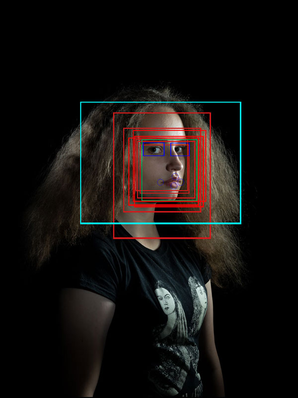 Cutting edge FER technology and its future is addressed in the current exhibition through portraiture of the generation that will feel its impact; a group of young girls, friends of Dahl’s daughter, and the young men in the Techlauncher team recruited by Dahl for her more complex experimentation with portrait image analysis.