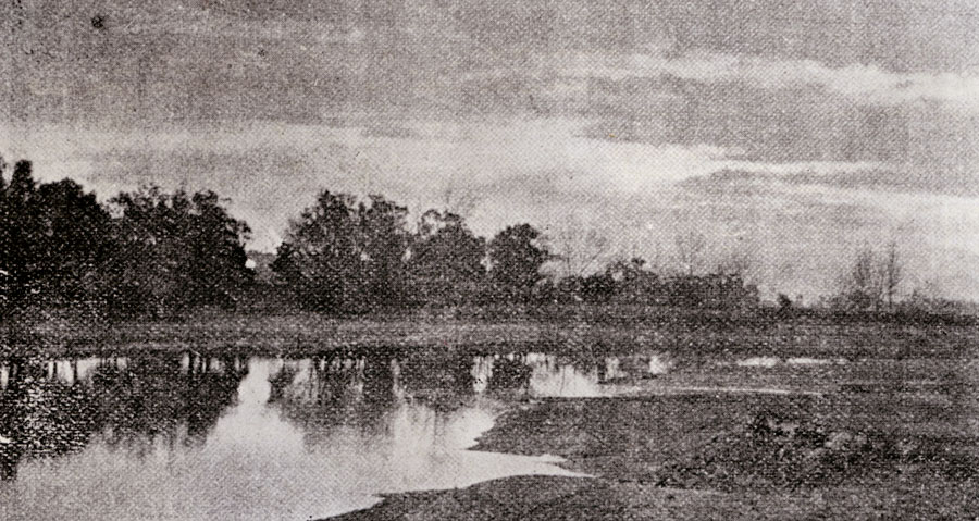 "Take for example his 'Thro' the Woods'. Here detail — softened though it be — and the concentration of light calls unconscious attention to the beautiful part of the scene, while the less essential, though necessary setting takes its unobtrusive place by suppression". Harrington's Photographic Journal, Dec. 22 1910, p. 375