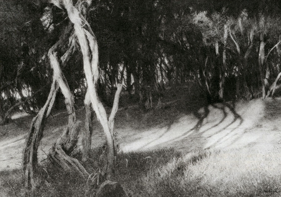 Some of this type of composition are even more radical than Cazneaux's treatment of such subjects. Perhaps no other pictorialist in Australia succeeded as well as Kauffmann in a poetic but naturalistic impressionism.