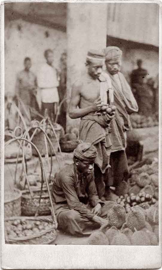 Fig 19: John Thomson. Malays selling durians, Singapore or Penang 1862.