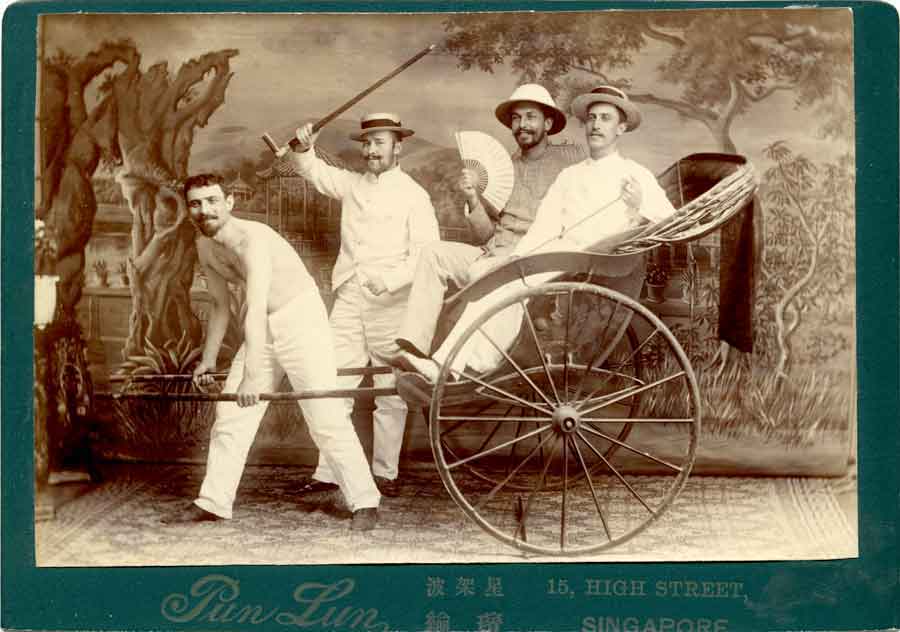 As they emerged in the late 1880s, many of the firms were run as Chinese family businesses and were patronized by all classes of customers. A spirit of fun is apparent in the many rickshaw comedies played out by Europeans in the Pun Lun studio (fig.22). What the Chinese operators thought of this is not recorded.