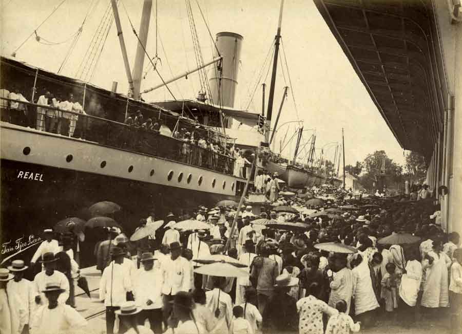 Fig 24: Tan Tjie Lan. KPM inter-island boat Reaet from Aceh at Tanjung Priok dock. Jakarta, around 1895.