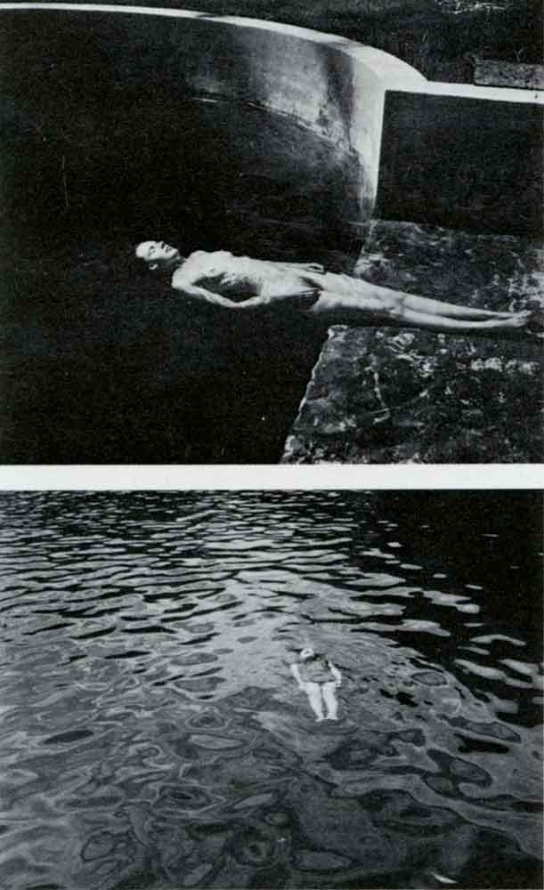 The remarkable 'Floater' of 1939, included in the Australian Centre for Photography's retrospective show in 1976, recalls Weston's superb nude half floating in a pool (1939). Questioned on this, Max Dupain pointed out that he was not aware of Weston's work until the late forties and still doesn't own a book on his work, though he added: ''But his unforgettable images stand stark in my mind, and I realize that if they are going to be surpassed it will have to be done in a non Weston way.' 1