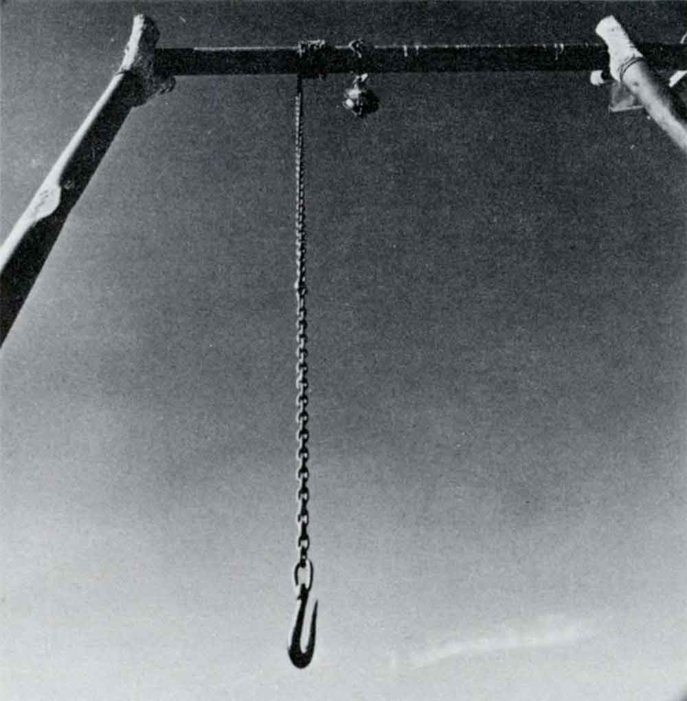 It seems that from pictures like 'Planks and Joinery' 1975 to the 'Stockyard series' of 1977, that ostensible subject matter has been dispensed with by closing in on objects. One of the 'Stockyard series', where posts appear like a guillotine, seems more austere than anything he has done previously.