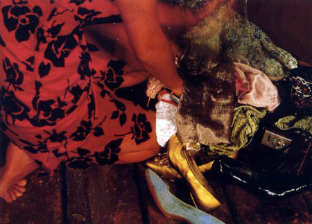 Its melodrama suggests and distances the work from the passivity of the work of a heroine of contemporary women photographers, the American artist Cindy Sherman, widely known for her use of the genre of film stills in her own work.