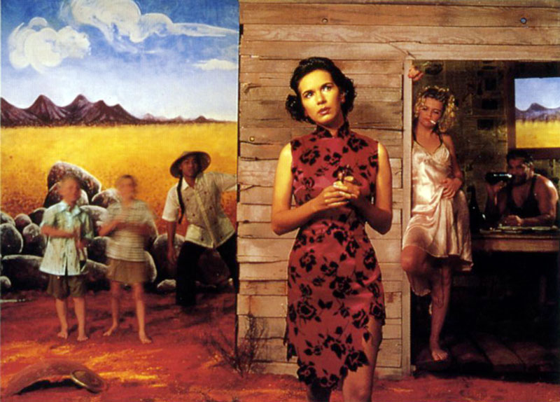 Ultimately, it does not matter that our Eurasian heroine is the artist Tracey Moffatt, an Australian of Aboriginal and European background. That satin cheongsam is unequivocally woven out of the storylines of those 'other' stereotypical females of Western cultures; the oriental siren and the sensual native.