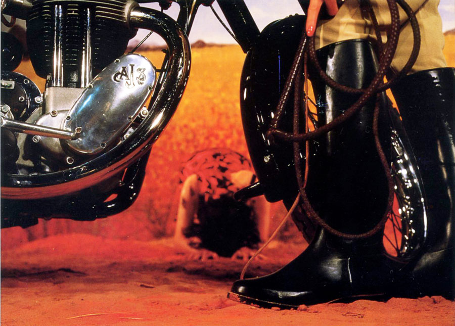 However, in the image which depicts subjugation to Bikie machismo we note the whip is held by a female. The Fall comes in the last triad in which, following on from a trying-on of the clothes of the white mistress (?), there is a theft - then the Fall in the most literal and figurative sense.