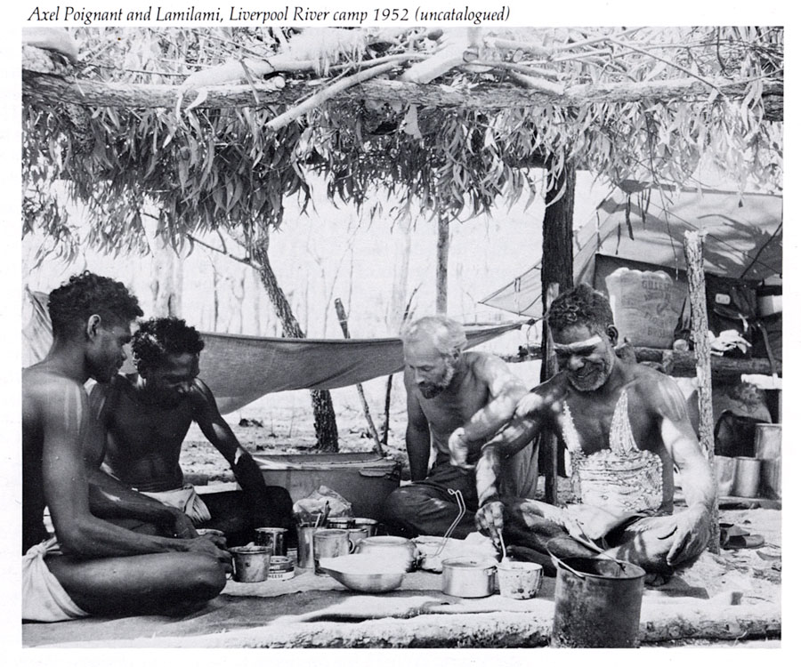Poignant spent three of his five months in Arnhem Land in the camp at Liverpool River and made thousands of photographs of many aspects of daily and ceremonial life. About 2000 documented file prints selected from all his Arnhem Land negatives have been placed in the National Library of Australia, Canberra.11