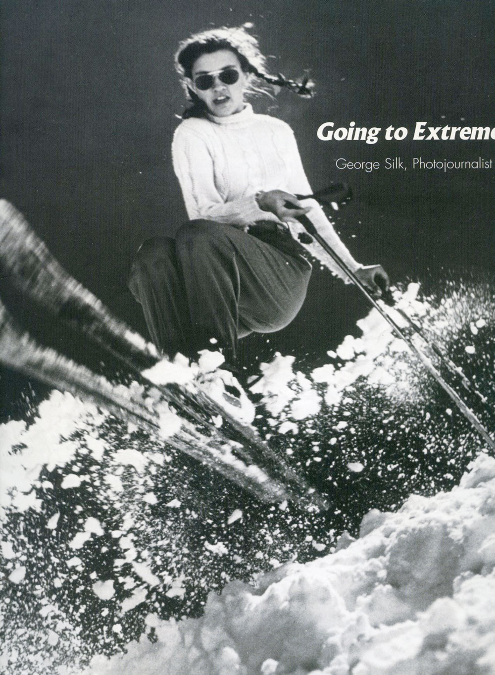 By the late 1950s Silk was becoming known for his sports photography involving technical innovations — beginning with a skiing story in 1958 at Sun Valley, Idaho, when he attached a wide-angle camera to his ski. In 1959, seeing the potential of the slit-cameras used at finish lines on racetracks and at athletics meets, he had a small portable version constructed. He took cameras under water and into seemingly impossible locations.