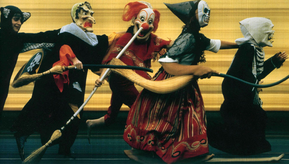 Silk had first tried out his slit camera by photographing his children and their friends dressed in Halloween costumes. A sequence of these colour images appeared as 'Spectacle of Spooks to be wary of on Halloween' in Life, 31 October 1960 — Executive Editor, Bernard Quint had the images cut and duplicated into wild graphic patterns worthy of a technicolour fantasy by Walt Disney.