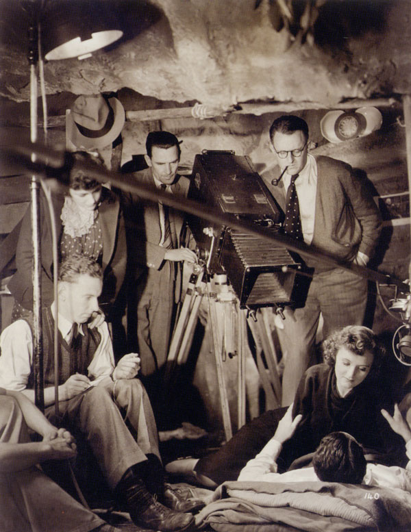 The Broken Melody set (l-r): Frank Bagnall, Jean Smith, George Heath, Director Ken G Hall filming Diana Du Cane as Ann Brady and Lloyd Hughes as John Ainsworth The Broken Melody 1938 National Film and Sound Archive of Australia Courtesy Cinesound Movietone Productions |