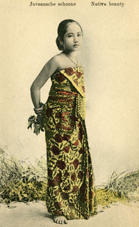Cephas and son Semuel’s series of lovely ladies for postcards at the turn of the century have none of the sleaze of other examples of this type of souvenir production. It is telling that the Malay language Bintang Hinda [Indies Star] journal, published in the early 20th century in Amsterdam but promoting new attitudes to the education and role of Indonesians, chose to use one of these dignified and graceful portraits of Javanese dancers on their promotional material. |