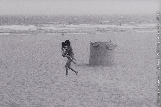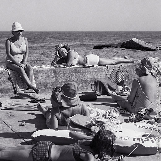 Similarly his trio of two men and a deeply tanned woman in a flower-power bikini showering together at Bronte, speak of a new social informality well beyond the preserve of the youth of the 'counter culture' of the sixties. As much as Max Dupain's geometrically ordered beach pictures of the 1930s -1940s, Williams's 1960s beach pictures are icons of their era.