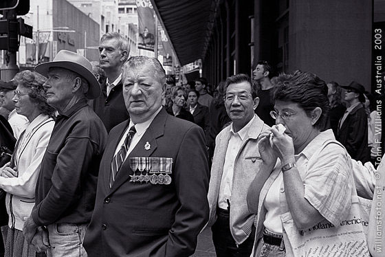 People are back on the streets in the 1990s and ironically, the ideal of racial harmony promoted by the Family of Man exhibition appears to be effected in modern Australia, in ways never anticipated under the rabid White Australia immigration policy of the post-war years. Now young Asian immigrants and the children of former enemy nations mingle on the corners as the old soldier generation looks on.
