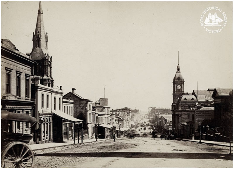 | 1864: Collins Street wood engraving |