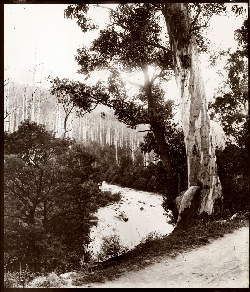 Of the thousands of negatives produced and prints exhibited few were interested in the natural environment. Less common in early photographs was evidence of any aesthetic appreciation of the character of the Australian landscape for its own sake. If people are present they are often directed to stand in different planes within the image but rarely with any appearance of being at home in the place.