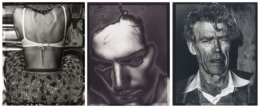 #3 Series, Wife's Back, Child, Self 1980 and Father 1980. Four silver gelatin photographs, double development process developed by the photographer, similar to solarisation, 25.5 x 20.4 cm each. Courtesy of Church Street Photographic Centre, Melbourne.