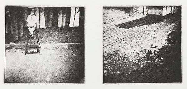# 11 Visions of Childhood, 1980; Hand-bound album of 12 paired photo-etchings on six sheets of heavy paper, interleaved with 14 sheets of tissue paper, images 9.4 x 9.6 cm, album 26.0 x 34.2 cm.
