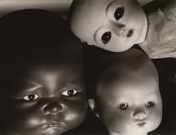 Bernhard’s doll studies date from her powerful 1936 tableaux Creation (aka dolls head Hollywood, CA) a striking image of a sad looking china doll’s head nestled in a female puppet hand.