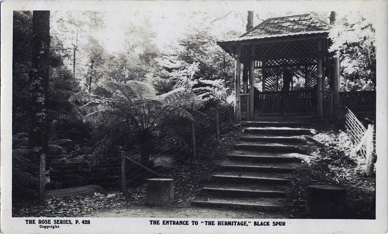 The Hermitage was built in 1894 on 32 acres at Black Spur as a home, guest house and bushland resort by famed German born photographer J.W. Lindt (1845–1926). It was operated as a guesthouse over successive owners from his death in 1926, then as a rented holiday accommodation and more recently restored as a private property. (see links below).
