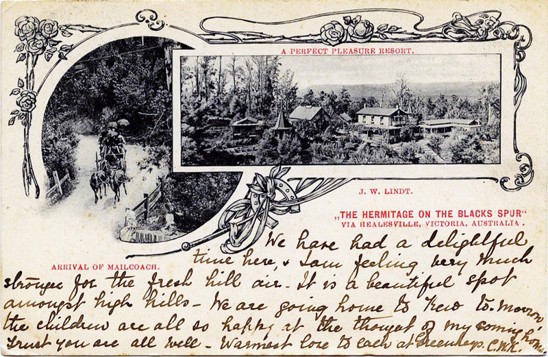 Victorian Collections: Postcard, John William Lindt, "The Hermitage on the Blacks Spur" via Healesville,