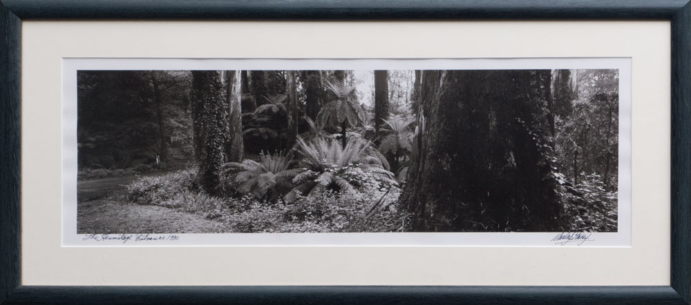 Given his interests in old architecture and the bush, Wes Stacey was bound to visit The Hermitage. My pair of Hermitage panoramas, a format Wesley adopted in the 1980s, are inscribed to me and dated 1990. Perhaps he made earlier visits but the dwellings are not quite colonial era historic or vernacular rustic enough for his 1980 Rude Timber Buildings in Australia and the garden too developed to have qualified for the earlier 1977 Timeless Gardens Stacey’s book with Eleanor Williams.