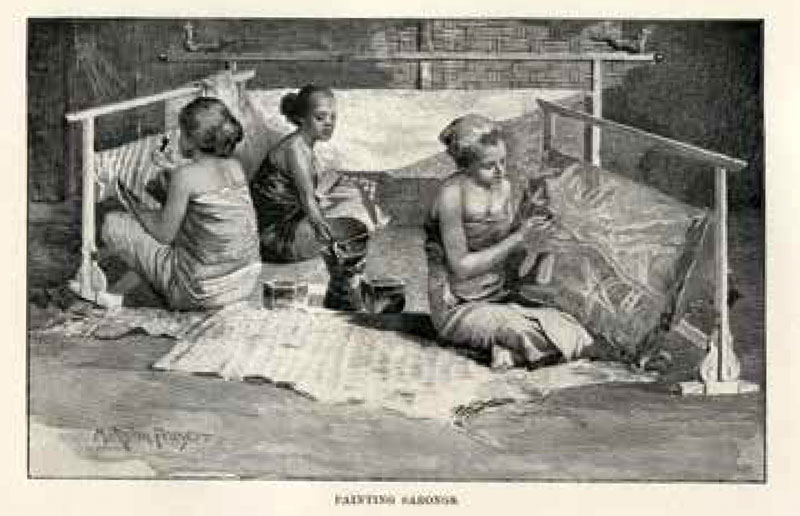 | #GN 2-4: Kassian Céphas (after) Painting sarongs, engraved plate by Malcolm Fraser in Java: the Garden of the East 1897 |