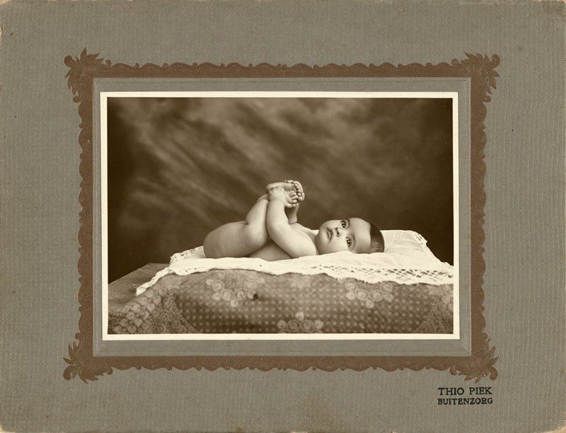 Others were Thio Piek (active 1920–1940), who ran a busy studio store in Buitenzorg (now Bogor) and made fine baby pictures; Beng Ik Tjiang (active 1920–1930) in Bandung, who made fine military portraits; and prominent Jakarta merchant and postcard publisher Tio Tek Hong (active 1902–1940), who may have commissioned a series of evocative tableaux with something of the character of Hollywood film stills.