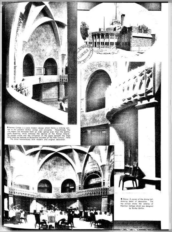 Kauffmann was quite busy and included in The Home and Table Talk annuals as well as other magazines. Table Talk Annual October 1 1937 pp48-49 had illustrations of Newman College (designed by Walter Burley Griffin) photographed by Kauffman.