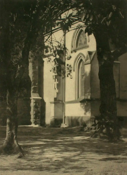 'Sunlight on Church'. A vintage gelatin silver photograph
