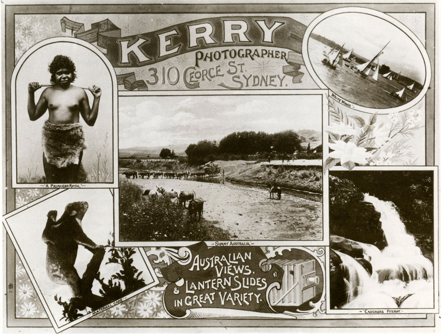 Throughout the 1890s, Kerry continued to build up his stocks of scenic views. In 1895, a peak year for travelling, he was commissioned by the New South Wales Government to travel through New South Wales and secure a set of portraits of Aborigines and corroboree scenes. Kerry also commenced his 'Squatters' service', travelling by train and horseback to homesteads all over the state.