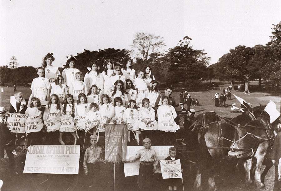 This shows the Pyrmont Congregational Sunday School on their wagon In the Sydney Domain |