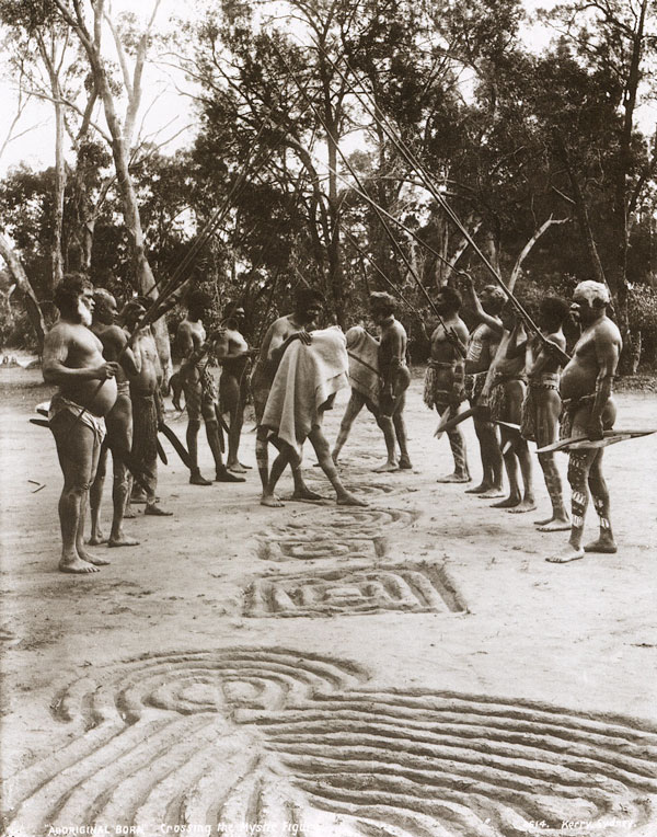 Sometime ago our Mr Kerry had the good fortune (which has been shared by only two or three other living travellers) to view a Genuine Bora Ceremony, which is the sole religious rite of the Aboriginal. But not only did Mr Kerry view it, he also photographed it.' From a 1908 catalogue, Kerry's Collotype Postcards. |