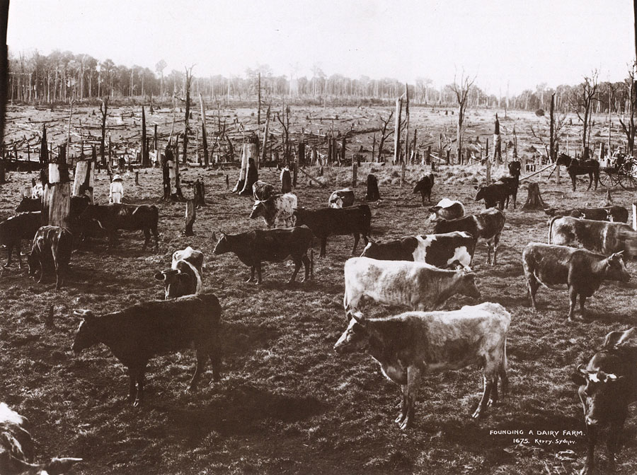 Taken at Dorrigo, New South Wales, the photograph shows the lot of many selectors. Settling on between 16 and 128 hectares of Crown Land, and paying it off over a long period, these farmers were known as 'cockies'. Some lived comfortably, but most experienced a hard life, as Steele Rudd reminds us in his On our Selection. |