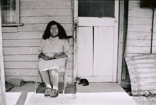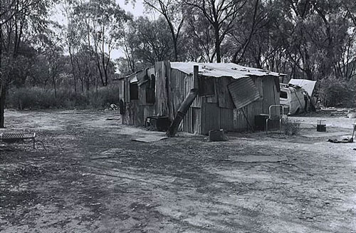 Michael Riley:  Yvonne Hill at home on their block outside Robinvale 1986