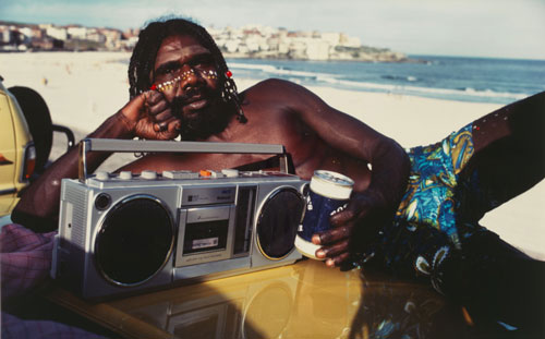 Moffatt's work attracted the only press coverage. Her black-and-white series, Some lads, showed dancers from the Aboriginal and Islander Dance Theatre quite nonchalantly, cheekily, passionately playing and posing - anything but the sobriety or anonymity of photographs of corroborees or even classical dancers. Her colour image of dancer and actor David Gulpilil mimicked the sun-baking, beer-drinking Aussies at Bondi Beach.