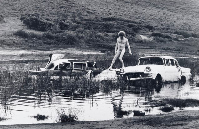 #12: Moore D. "The respected Australian photographer Wes Stacey loves doing mad things" 1971, Kurnell, Sydney, Silver gelatin (Detterman, 2000, p. 57)