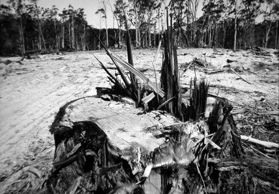 Serving as a photographer for an inquiry body, placed upon the photographer and the photographs he produced was a responsibility to be as impartial and true to the sights and sites under examination, where Stacey's inclination towards a pragmatic and objective vision have been accentuated and his existential and philosophical tendencies must be tempered and left out of the picture. His distinct style and clarity of vision however remained apparent, and the images brought to us by him are firsthand testimonies of the indiscriminate destructive clearfelling logging that has come to represent in Australia's environmental history (National Gallery of Victoria, 1986, p. 2).