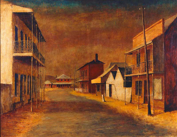 Fig 29: Russell Drysdale, Main Street, Sofala, 1947, black and white print, 36.7 x 35.4 cm,