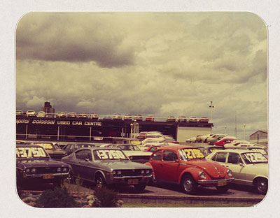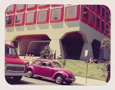 A Volkswagen Beetle parked outside an office block in North Sydney (Fig. 40) brings the 1970s to life as does an icon of the era, a brown vinyl beanbag (Fig. 41) incongruously stuffed into the boot of a car.
