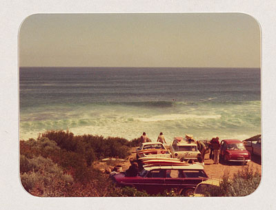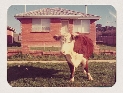 The ubiquitous suburban red brick home is given a surreal twist with the presence of a cow on the verge (Fig. 42) and two boys on their (now retro-cool) bikes, dressed in purple and eating lollies (Fig. 43), triggers nostalgia for the time when cycling without helmets was the norm. Surfing culture is also present and archetypal with parked cars laden with surfboards and surfers surveying the break (Fig. 44).
