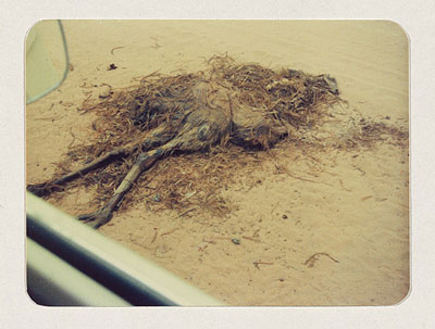 Its emaciated carcass and decimated feathers dissolving into the sandy floor gives an almost ghostlike appearance, half present and half fading away. The experience of driving along the roads of Australia expressed in these images is aided by the linear sequence in which they are displayed.