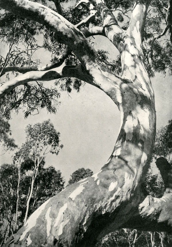 The Pictorialists, the aging masters, had adapted to the sharper quality of modern lenses and emulsions in their approach to landscape photography. Their work was not as painterly as it had been in their heyday. A strong branch of the school had turned away from general landscape to studies of individual trees, particularly eucalypts. As several more modern photographers were also interested in individual trees as part of the modern aesthetic of individual studies, those Pictorialists who followed this trend were able to gain more respect than those still following their nineteen-twenties style. Ure Smith published Australian Treescapes as part of the company’s Miniature Series about this time.9